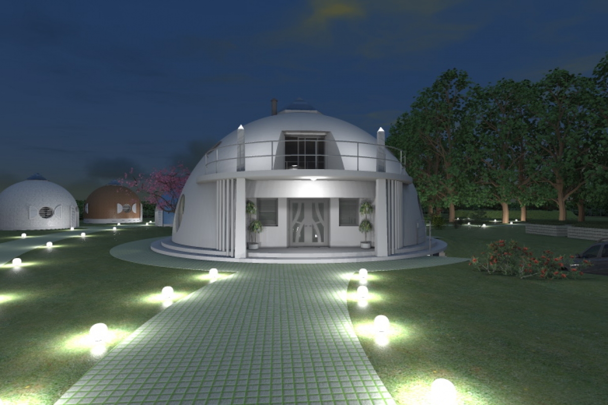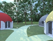 Do każdej kopuły przyporządkowałam minerał, gdyż chcę by domki dodatkowo działały jak odpromienniki i planuję w każdym z nich zatopić po 10 kg danego minerału. Jak technologia na to pozwoli to w posadzce na całej powierzchni. Konkretne minerały mogą jeszcze ulec zmianie, zależy to od dostępności kruszcu.